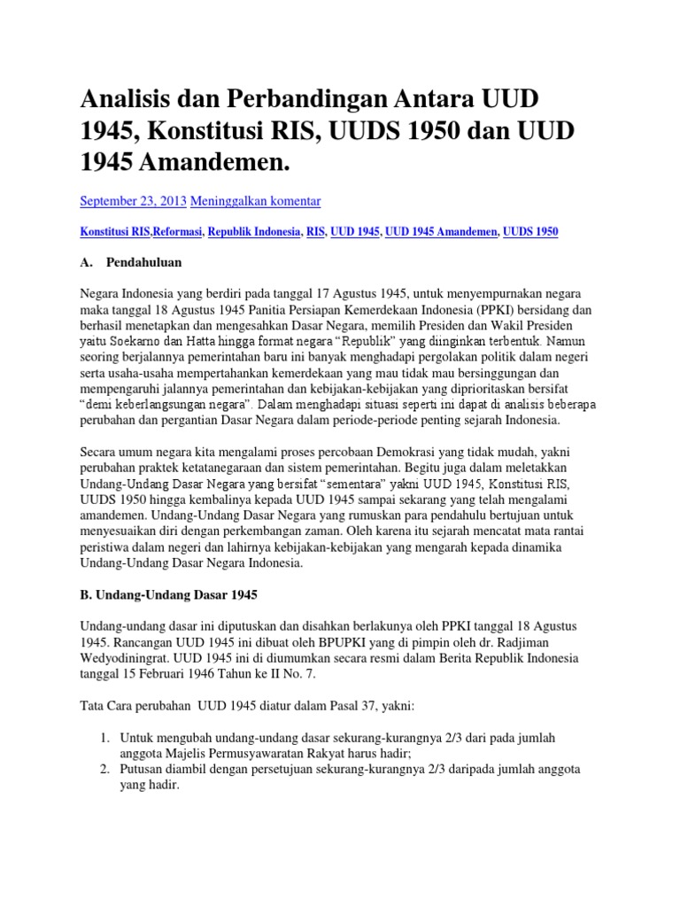 Meskipun ma dan mk masuk ke dalam 1. Uud 1945 sebagai konstitusi di indonesia yang selama ini disakralkan dan tidak boleh diubah, kini telah mengalami beberapa perubahan. Setiap negara memiliki konstitusi yang berbeda, baik konstitusi di indonesia sekalipun. Perbandingan uud 1945, konstitusi ris 1949. Uud dengan konstitusi </b> konstitusi dengan konstitusionalis me </b>.